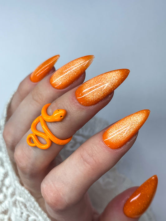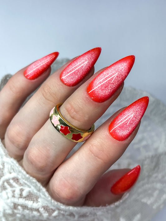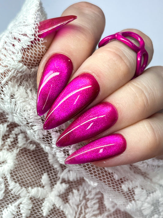 Tickled Pinque's iconic Cat Eye Colour Gels provide a high-shine, reflective, galactic effect. Each shade is infused with microscopic magnetic particles that allow you to add dimension to each nail by holding a nail magnet over the uncured gel to create one-of-a-kind designs.
