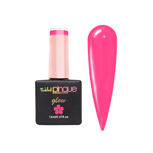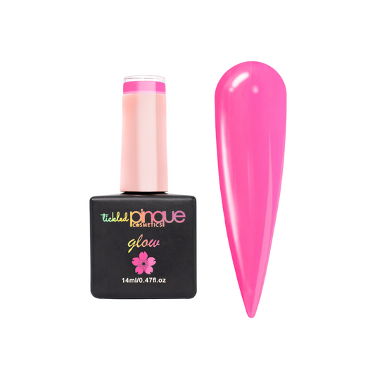 Tickled Pinque Cosmetics Glow Colour Gel Polish is a stunning highly pigmented formula, with a smooth controlled application. When applying over the natural nail, the use of Tickled Pinque Cosmetics Base Gel is advised.