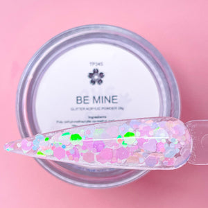 "Be Mine" is a pink opalescent glitter acrylic that is like a sparkling love letter to your fingertips! This dazzling hue is a symphony of pink opalescence and radiant hearts that will have you falling head over heels in love with your own nails. Crafted to make your heart skip a beat, "Be Mine" captures the essence of Cupid's arrow, leaving a trail of captivating shimmer wherever you go. With "Be Mine," you'll be ready to spread the love and joy on Valentine's Day or any day when you want to celebrate your inner romantic. It's a charming declaration of affection right at your fingertips, ready to make your love shine even brighter. Get ready to sparkle, dazzle, and fall head over heels with "Be Mine"!