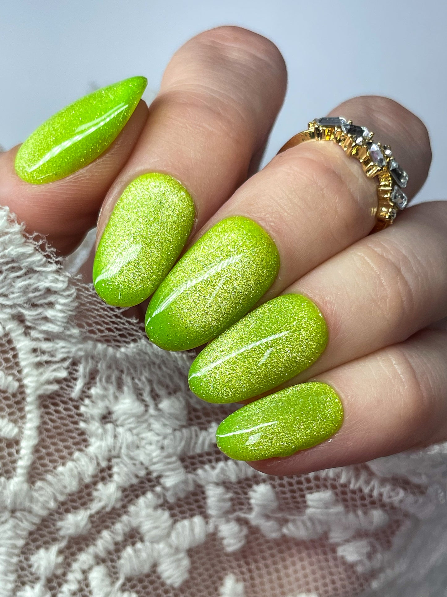 “Huntress," where lush green meets feline finesse in a bottle! This gel polish is a lively burst of colour that will transform your nails into the captivating gaze of a playful cat. “Huntress” dances on your fingertips with the playful charm of a mischievous feline, leaving a trail of vibrant energy wherever you go. Unleash the bold and vibrant side of your style with the captivating charm of "Huntress."