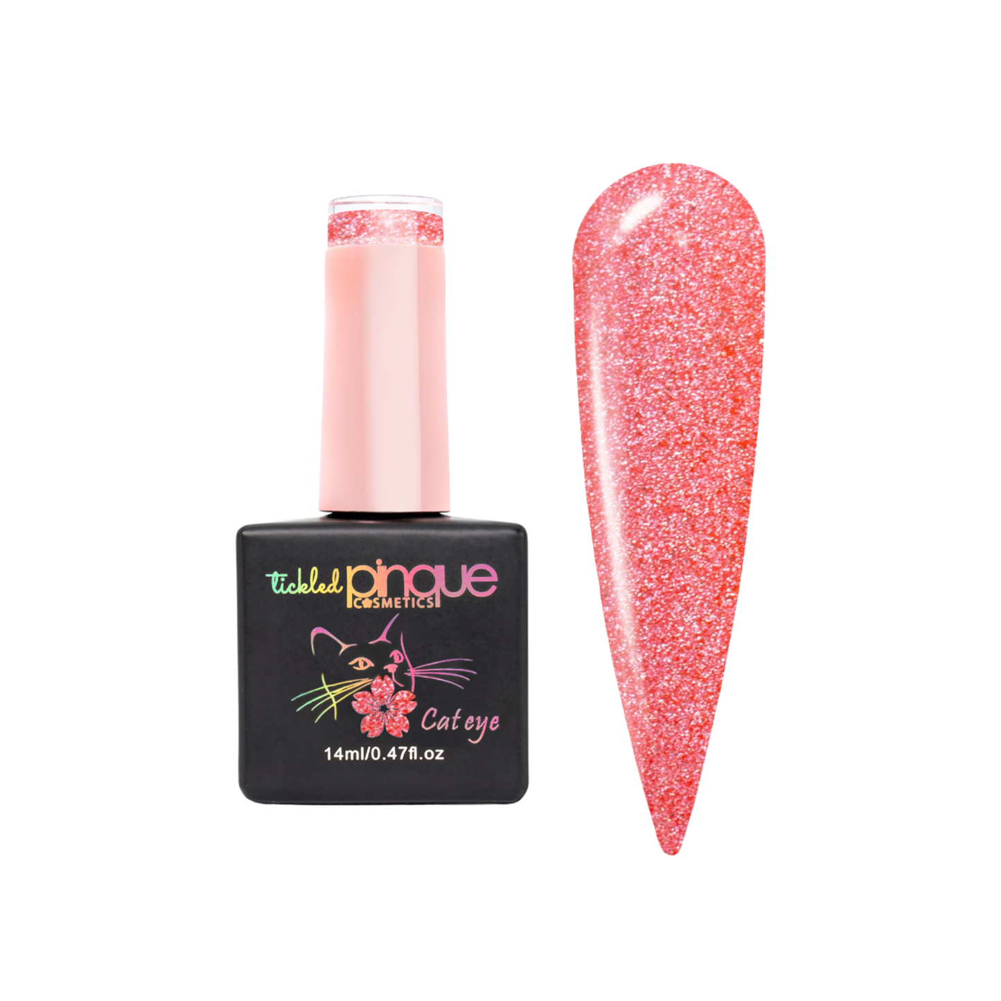 Tickled Pinque's iconic Cat Eye Colour Gels provide a high-shine, reflective, galactic effect. Each shade is infused with microscopic magnetic particles that allow you to add dimension to each nail by holding a nail magnet over the uncured gel to create infinite one-of-a-kind designs.