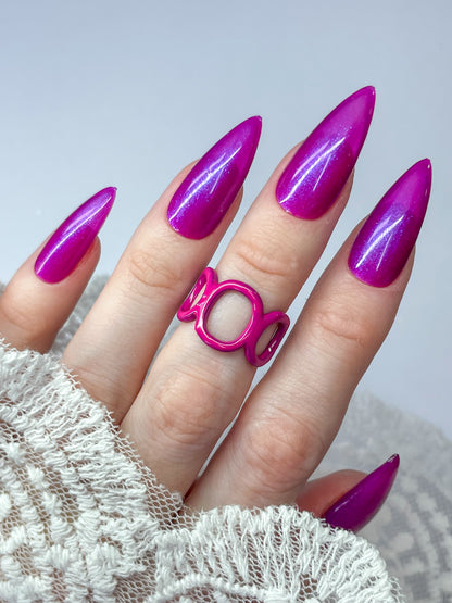 “Nightshade” is an enigmatic shade that whispers tales of moonlit mischief and casts a spell of allure on anyone lucky enough to catch a glimpse. Dive into the deep purple decadence that will leave everyone mesmerized, no imagination required.