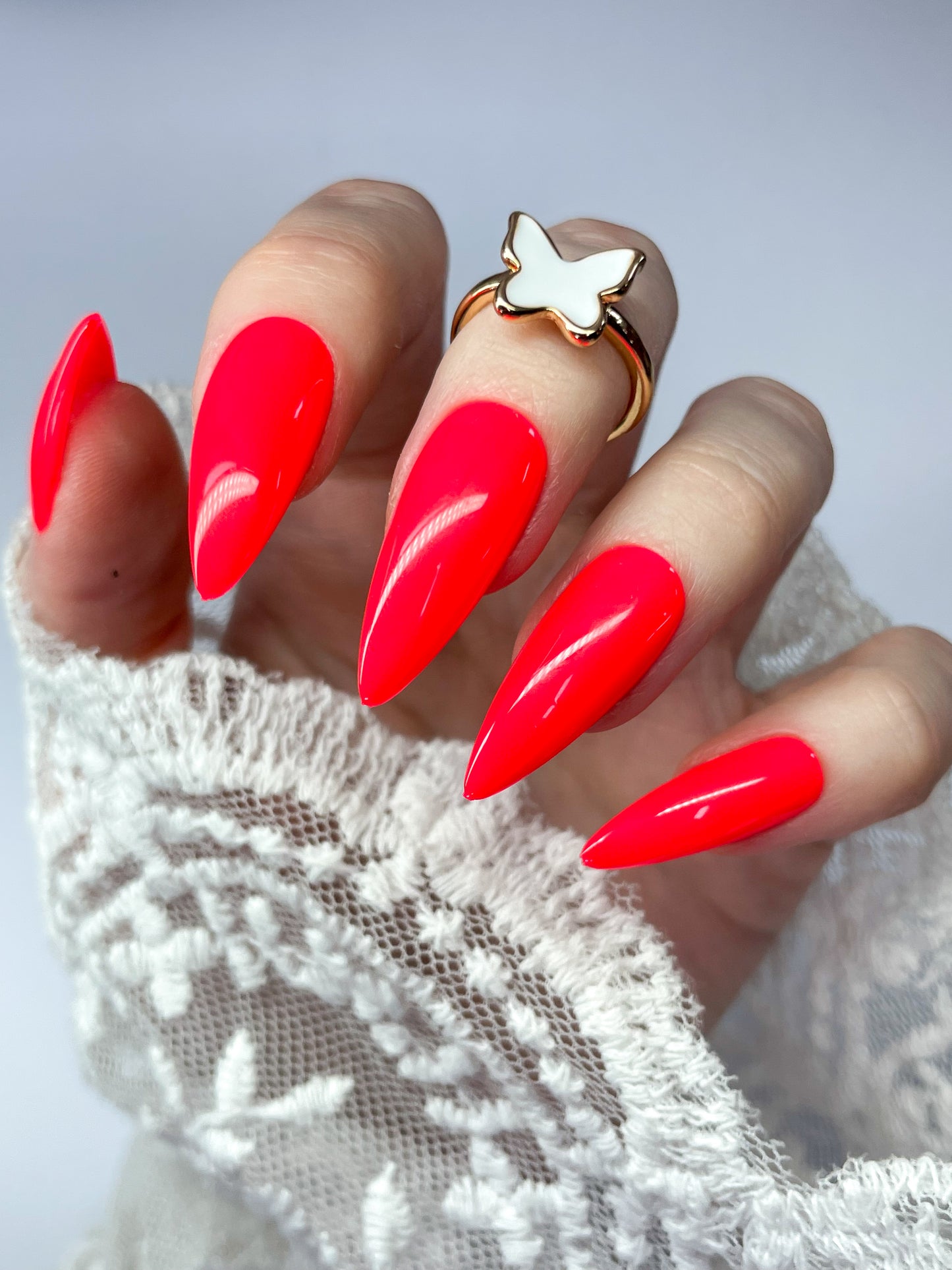 "Coast To Coral," a vivacious gel polish that radiates the spirited hues of a tropical sunrise. This lively concoction of bright coral whispers of sunny days, sandy beaches, and fruity cocktails. Let your nails become a vibrant playground where the sun kisses the sea, and every glance at your hands is a mini vacation. So, why merely paint your nails when you can transport yourself to the lively shores with "Coast To Coral"? You deserve this tropical treat!
