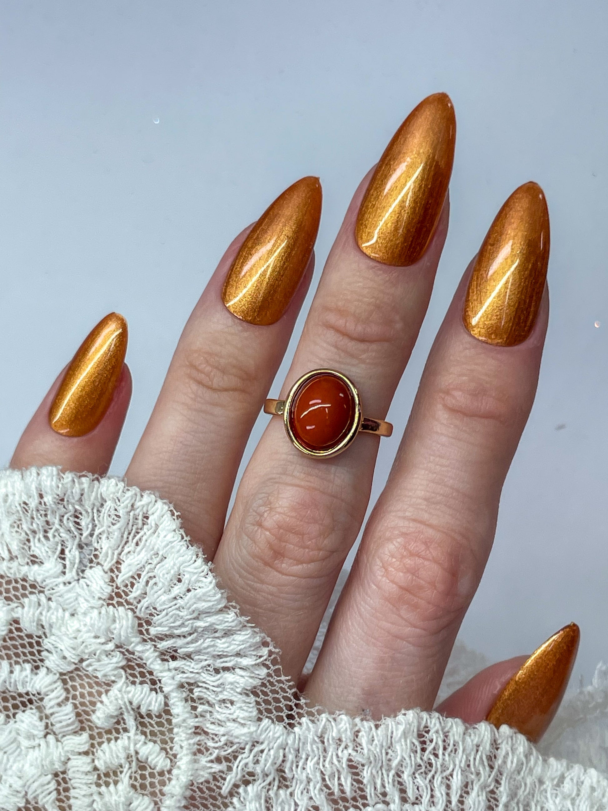 Elevate your manicure to new heights with "Filthy Rich," a liquid treasure that whispers sophistication. This decadent fusion of gleaming gold and bronzed brilliance effortlessly wraps your nails in the embrace of extravagance. The liquid gold of "Filthy Rich" transforms your nails into a manifestation of pure unapologetic luxury, casting a spell of glamour that's impossible to ignore. "Liquid Gold" is the colour of affluence and the finer things in life.