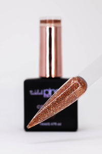 "Sienna" - This gold-bronze glitter gel polish is a burst of vivacity, reminiscent of a sun-kissed desert at twilight. Think of it as a radiant desert mirage captured in a bottle—where warm hues flirt with the cool breeze of the evening. Every layer of 'Sienna' transforms your nails into a mesmerizing canvas of lustrous splendor, a celebration of playful elegance that sparkles without apology.