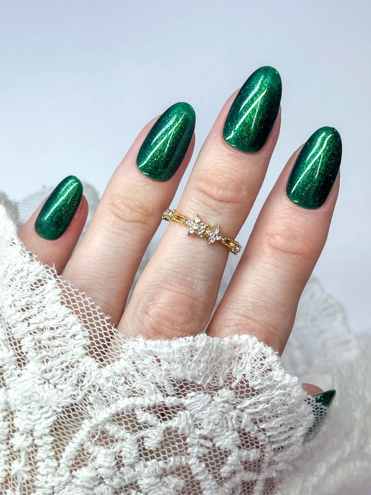 Let the velvety smoothness of "Evergreen" transport you to a playful lush woodland realm, where every brush brings the magic of the emerald canopy to your nails. Embrace the whimsy of nature's palette, and let "Evergreen" be the vibrant echo of a mischievous breeze through the ancient trees. Transform your nails into an evergreen oasis that dances with the spirit of the forest—because who says your fingertips can't play in the enchanted realms of colour?
