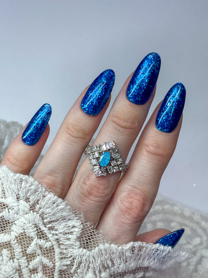 Dive into a celestial reverie with our mesmerizing royal blue glitter gel polish, "Starry Eyed." Transport yourself to a world where the night sky meets a burst of playful elegance. This enchanting hue, reminiscent of the deepest midnight blues, sparkles like a constellation of stars on your fingertips. Let your nails become a cosmic canvas, each brush delivering a celestial dance of shimmering glitter. "Starry Eyed" is a portal to a universe where glamour and fun collide, leaving your nails adorned with the magic of the cosmos.