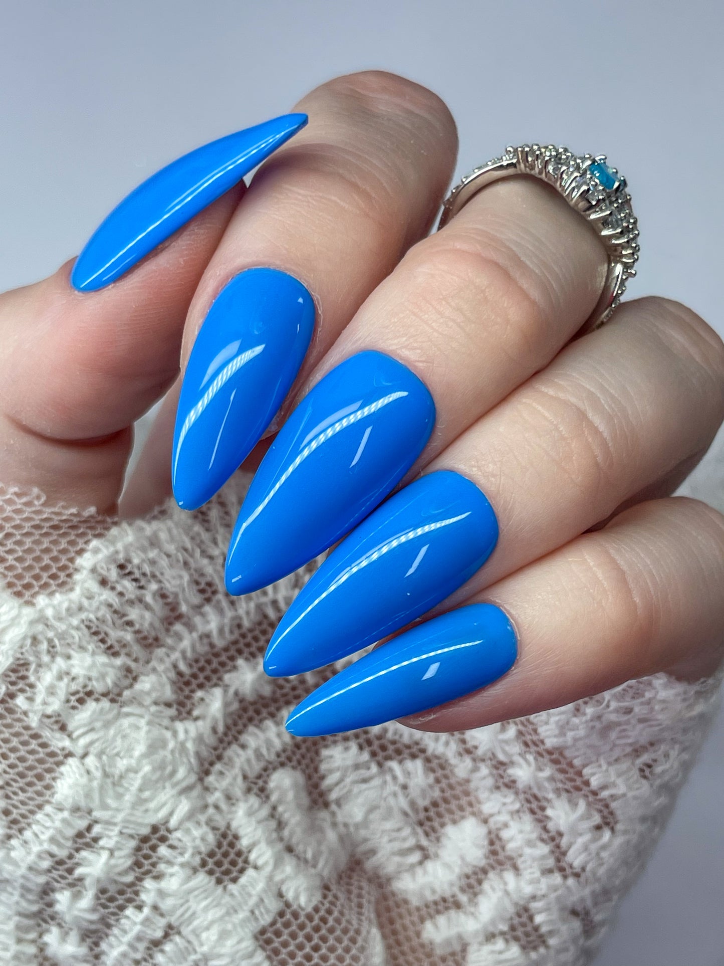 "Too Good To Be Blue" - Dive into a sea of serenity with a hue that's so captivating, it's practically a mood enhancer. Let your nails tell a playful tale of endless skies and boundless fun. Embrace the brilliance of this polish as it effortlessly transforms your nails into a masterpiece of pure delight. It's not just a colour; it's a mood-lifting experience that's Too Good To Be Blue!
