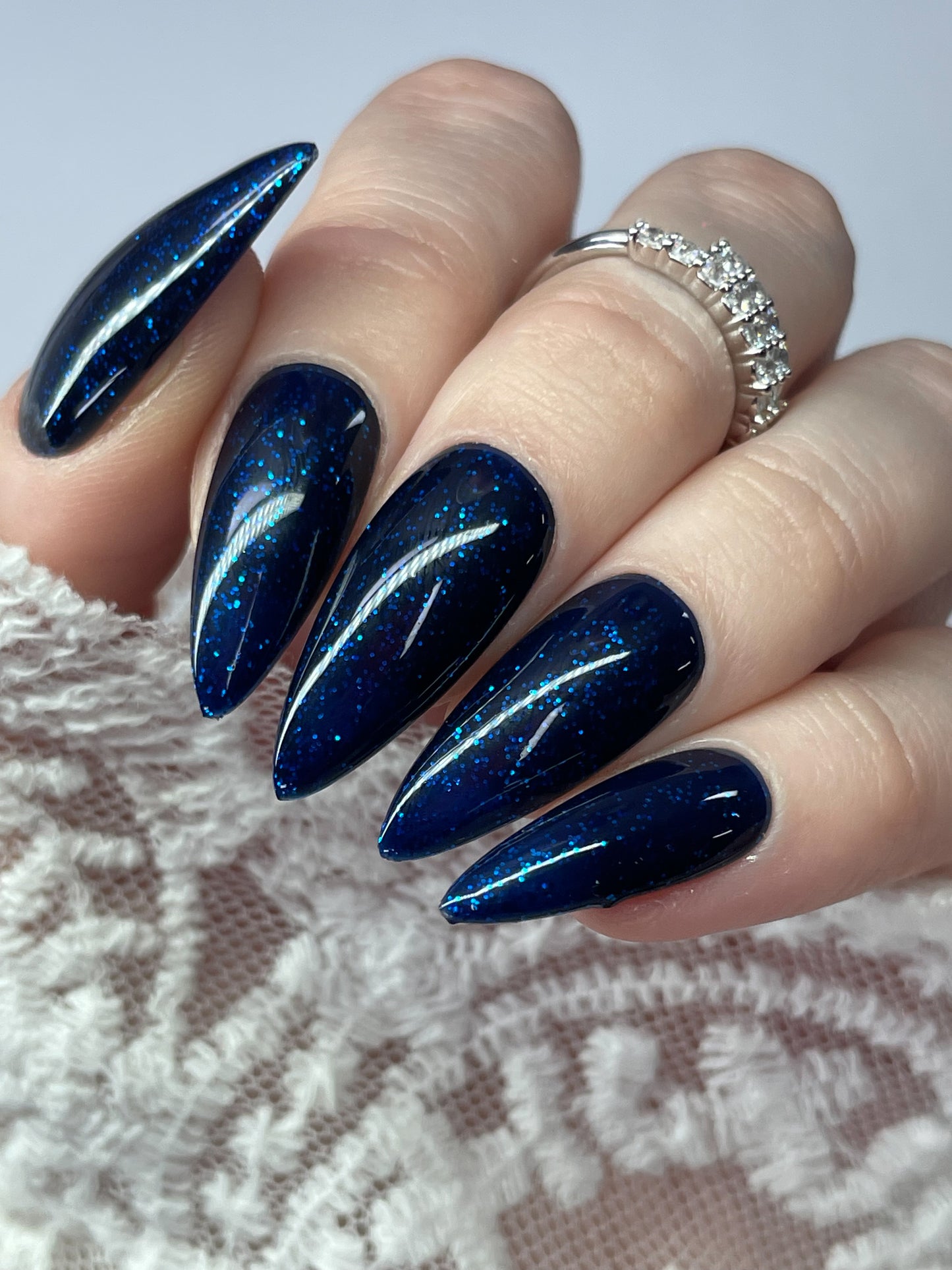 "South Pole," the enchanting blue glitter gel polish that captures the magic of the winter wonderland in every drop. Dive into the frosty allure of this sparkling hue as it transforms your nails into a snowy spectacle. With its shimmering crystals, this polish adds a touch of Arctic charm to your holiday look, making you the star of any festive gathering. Embrace the cool elegance of "South Pole" and let your nails twinkle like the starlit night sky during this joyous season.