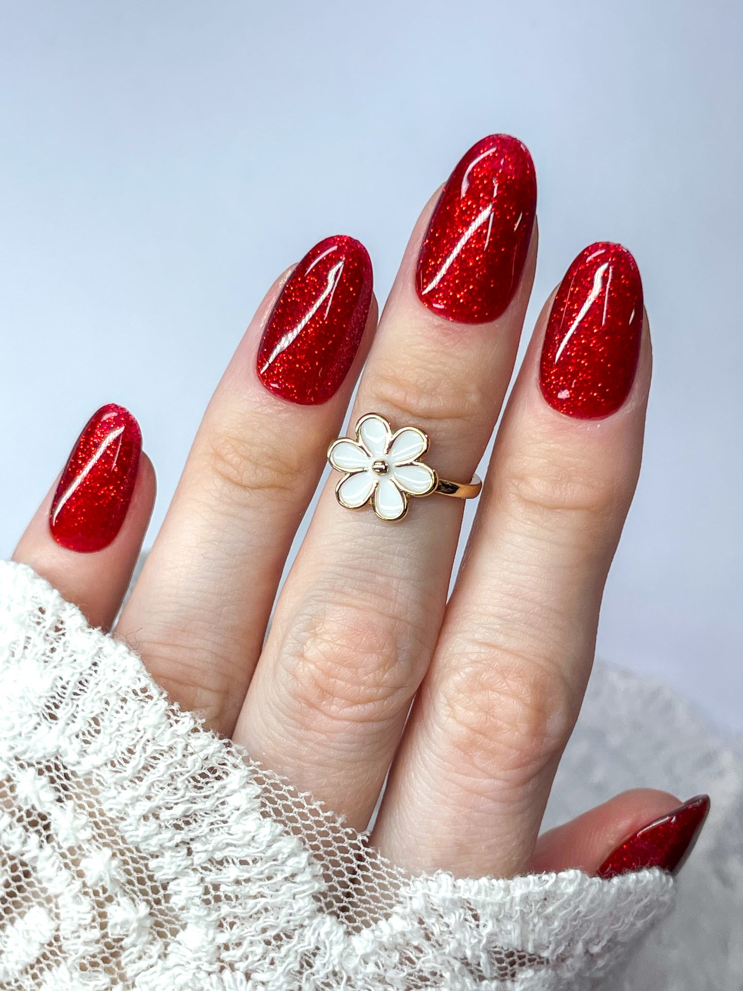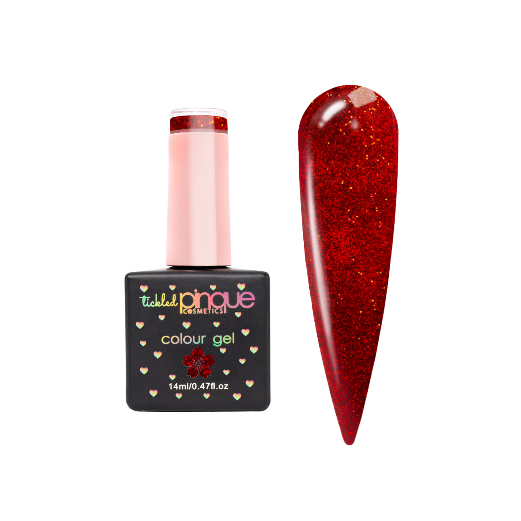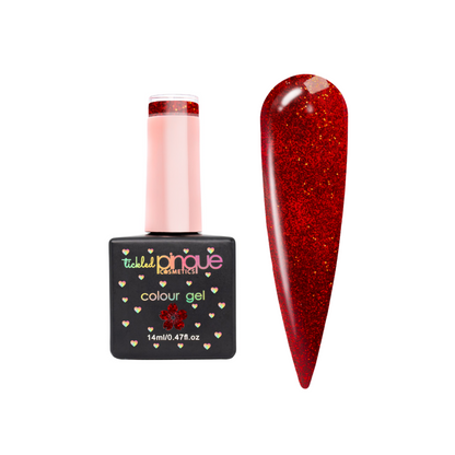 "Collateral Damage" is a fiery red glitter gel that’s as bold as a broken heart and as dazzling as true love’s spark. This fierce shade lights up your nails with irresistible shimmer, perfect for stealing the spotlight on date night—or slaying solo. THE go-to colour for celebrating romance or reveling in independence - this glittery red ensures your nails leave a lasting impression!