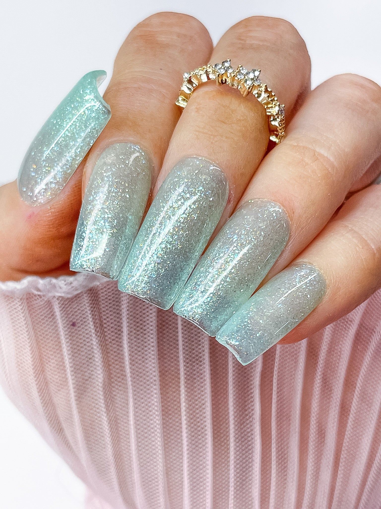 Serving celestial sparkle with a minty-fresh twist, Jupiter is out-of-this-world pretty. This soft glittering mint green is giving intergalactic goddess energy—cool, calm, and totally cosmic. Whether you're orbiting your next set or manifesting major main character moments, Jupiter is here to keep your nails glowing like the queen of the galaxy. Astronauts could never. ✨🪐💅
