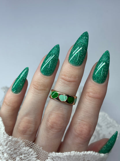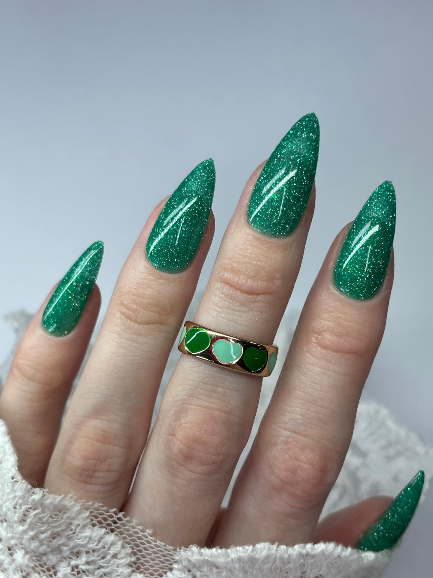 The star-studded sensation, "Beverly Hills"! This sassy gel polish is more dazzling than a Hollywood premiere and shinier than a celebrity's smile on the red carpet. With its reflective glitter in a radiant green hue, it's like having a burst of paparazzi flashlights right at your fingertips. This shade doesn't just shine, it sparkles with the glitz and glamour of the iconic 90210 postcode. Get ready to steal the spotlight and make every day a runway with "Beverly Hills" – the must-have accessory for a touch of Tinseltown glam!