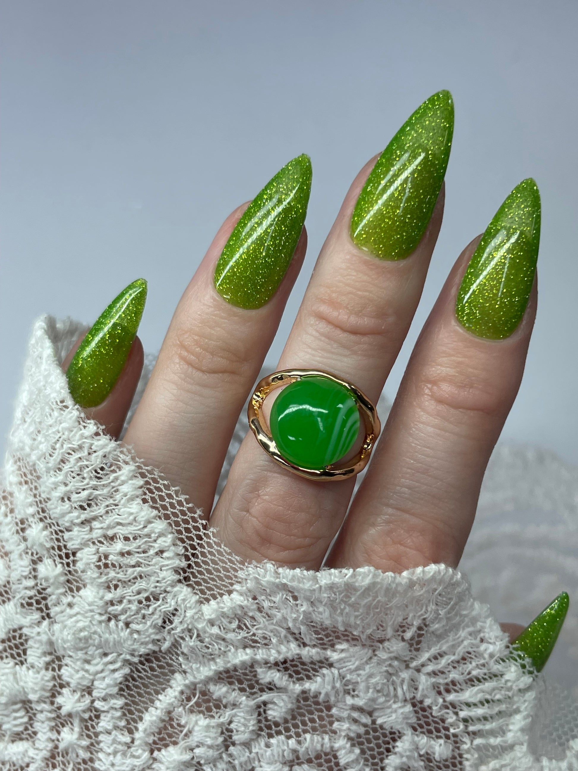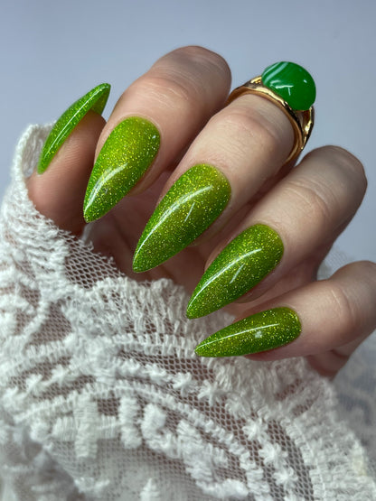 Step into the limelight with "Standing Ovation," where your nails steal the show in this mesmerizing lime green gel polish. This vivacious shade is a paparazzi-worthy spectacle for your fingertips. The reflective glitter dances like a disco ball, capturing attention with every glint and gleam. As you flaunt this playful polish, be prepared for a red carpet-ready experience that's as attention-grabbing as a Hollywood premiere. “Standing Ovation” is a spotlight-stealing sensation that leaves everyone applauding for your glamorous nails. Let the dazzling paparazzi-themed glow of "Standing Ovation" make every moment a star-studded affair!