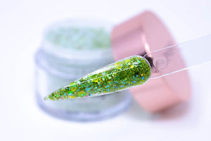"Melodrama" is your backstage pass to the holographic realm of fun and fantasy. You'll be immersed in a shimmering kaleidoscope of electric greens and glitters that dance and twinkle. So, get ready to flaunt your nails with "Melodrama" and let the world see your inner star shine like never before. Transform your nails into a spectacle of dazzling green glitter and join the "Melodrama" movement today! Your nails deserve nothing but the best, and "Melodrama" is here to deliver just that.
