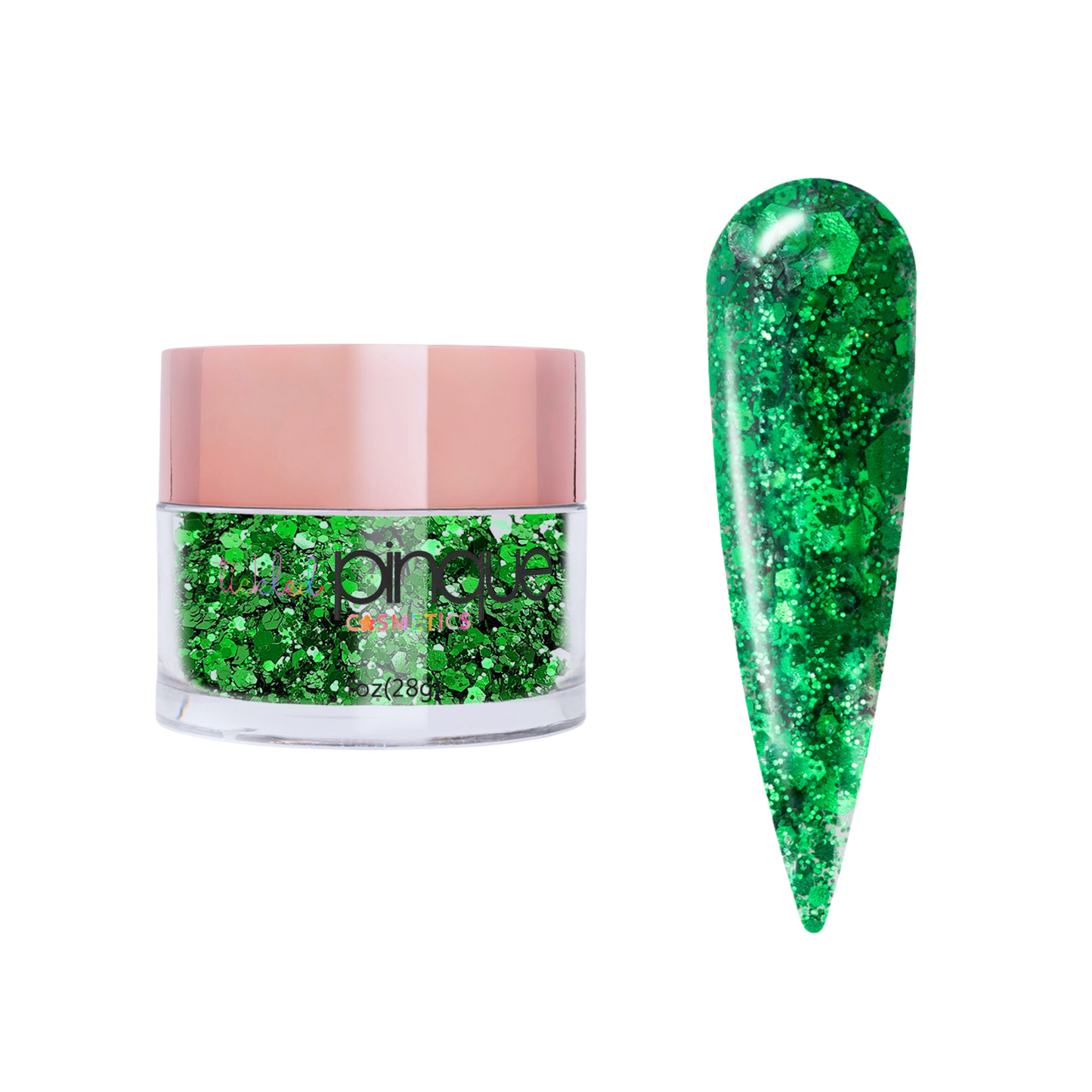 "May" - the enchanting green glitter acrylic that's here to make your nails dance with delight! This vivacious shade captures the essence of May's birthstone, the mesmerizing emerald, and turns your fingertips into a sparkling treasure trove. "May" is like a radiant gemstone for your nails, glistening and shimmering with every movement. This magical hue will transport you to a world of mythical forests and fairy tales, where emerald leaves twinkle under the moonlight. It's time to let your nails do the talking and tell a sparkling story of May's birthstone.