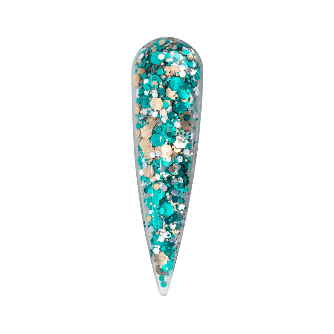 Dive into the shimmering depths of "Pool Party," where your nails become the life of the party! With a splash of teal and a sprinkle of gold and silver, your nails will glisten like the sun dancing on the water. "Pool Party" transforms them into a sparkling spectacle that's bound to make a splash wherever you go. Whether you're lounging by the poolside or dancing the night away, this nail colour is your ultimate accessory for all your summer soirées.