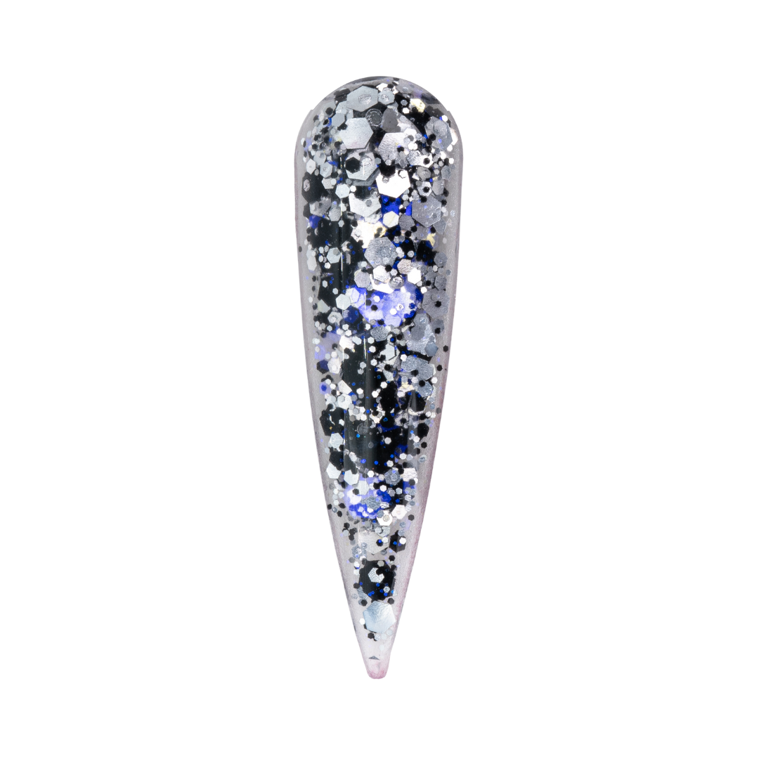 "Silver Linings" is like a midnight sky sprinkled with stardust and laced with the enchantment of a purple twilight. “Silver Linings” is a mini universe of sparkling galaxies, wrapped in sultry black and radiant silver, with a burst of royal purple, making your nails a canvas of cosmic delight. It's more than a glitter acrylic; it's a portal to a world where your fingertips become constellations, and your style reaches interstellar heights. Embark on a journey to nail nirvana, order "Silver Linings" now and let your nails twinkle and shine brighter than ever before!