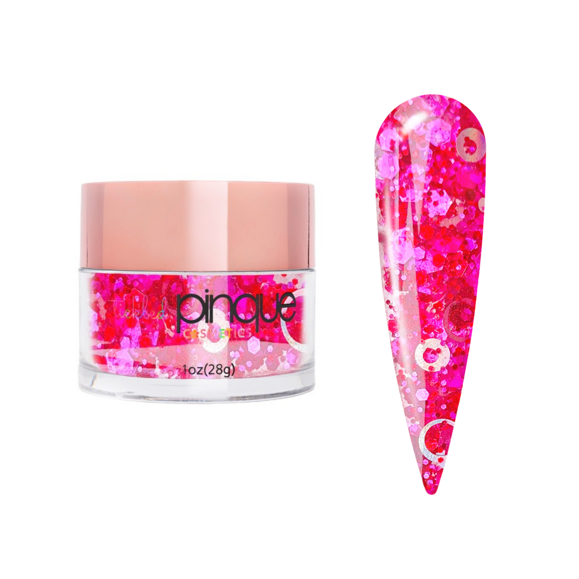Tickled Pinque's innovative, superior Acrylic design powders provide a velvet, buttery application. These pre-mixed, high-shine acrylic glitters are just what you or your guest need to add that extra "WOW" factor to your nail service. Try a full coverage, marble, or faded look.