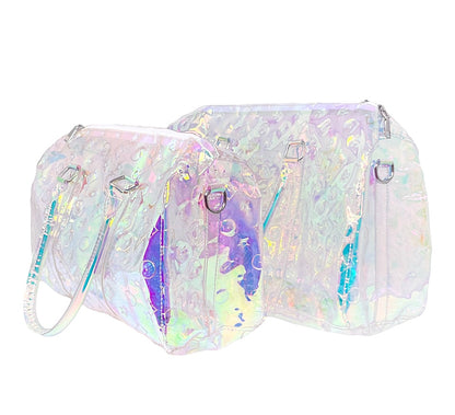 Tickled Pinque’s Holo Blossom Tote is a luxurious designer-inspired iridescent tote that’s stylish and classy. Our Holo Blossom Tote bag comes in two sizes, with sturdy double zippers, durable carrying handles and attachable shoulder straps. She’s the perfect companion on your journey to paint the world Pinque 💖