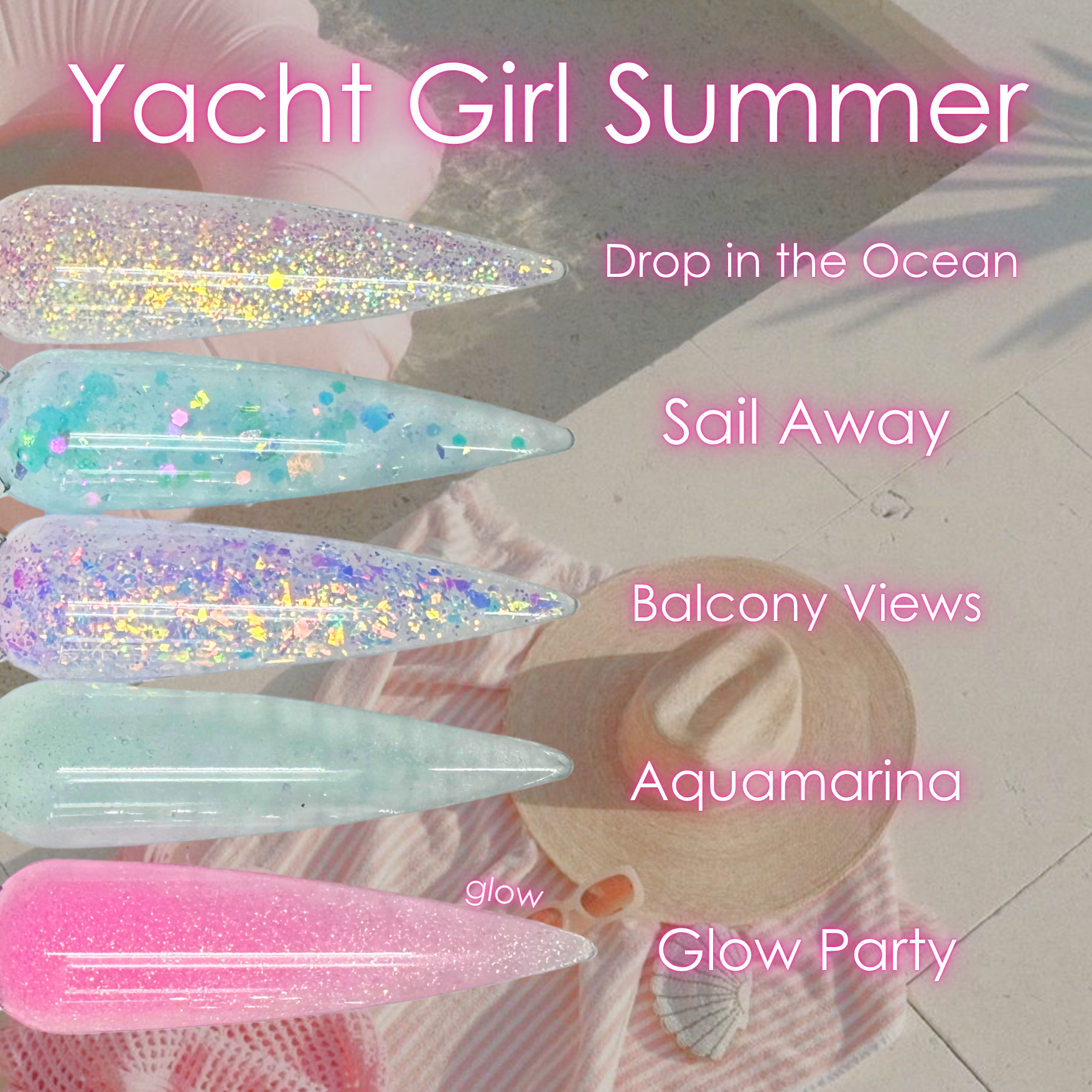 Yacht Girl Summer is your first-class ticket to dreamy coastal nails, featuring five chic acrylics inspired by ocean breezes, balcony views, and seaside sunsets. From rich aquas to luminous glows, each shade captures the essence of life at sea — glamorous, effortless, and just the right amount of extra.